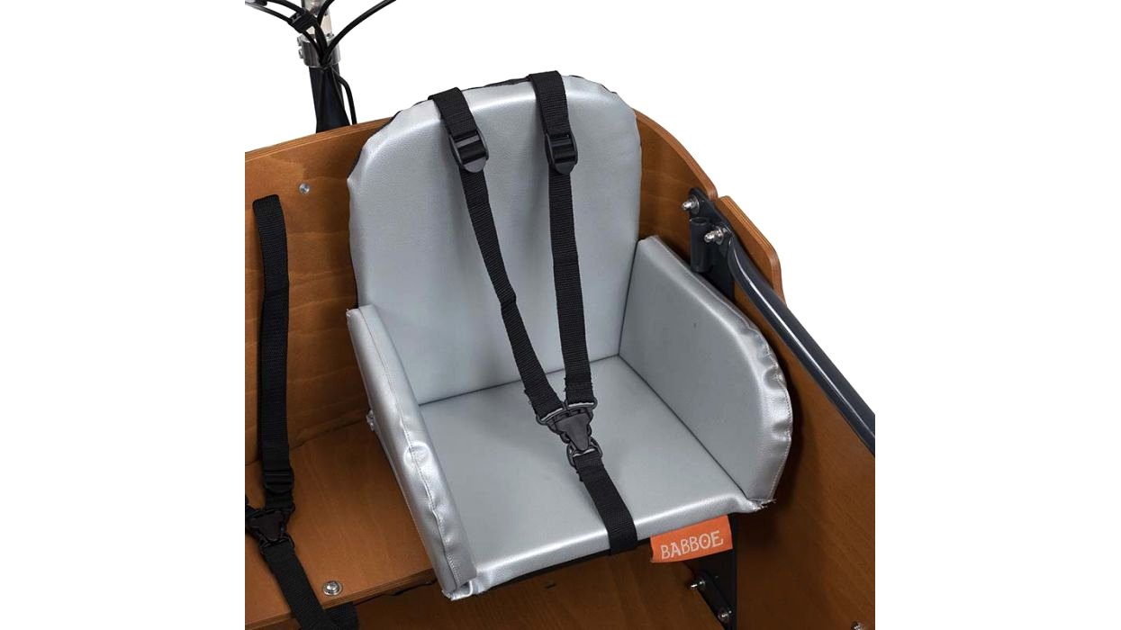 Dans un Babboe Big, deux sièges enfants tiennent parfaitement côte à côte. Un siège enfant peut être installé en complément d'un set de coussins complet ou sur un banc à côte d'un siège coque pour enfant ou pour bambins. En revanche, seul un siège enfant de ce type peut être utilisé avec le Babboe City et Babboe Curve du fait de l’arrondi du bac.