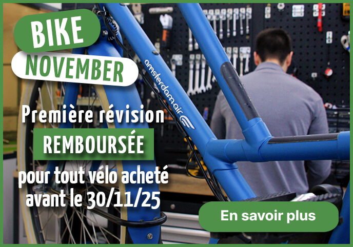 Photos non contractuelles Les cycles sont présentés avec des accessoires optionnels pour vous donner un aperçu des possibilités de personnalisation. Pour connaître la configuration de base, merci de vous reporter au descriptif ou de cliquer sur le bouton Configurer. Amsterdam Air se réserve le droit de modifier sans préavis ses produits afin de les améliorer.