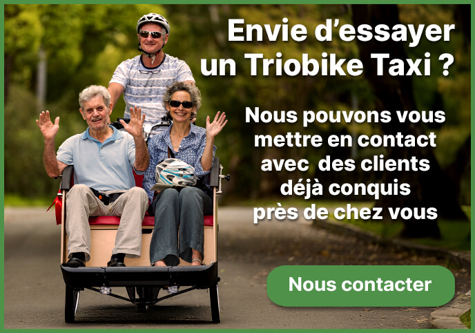 Ce vélo taxi électrique est conçu pour transporter un ou deux adultes :
