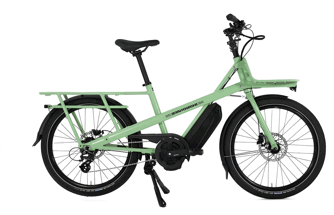 Le Jean II est un modèle de vélo cargo électrique de type midtail qui peut accueillir 70 kg à l’arrière grâce à son porte bagage allongé qui en fait sa particularité. Le rack avant a une capacité de 15 kg.