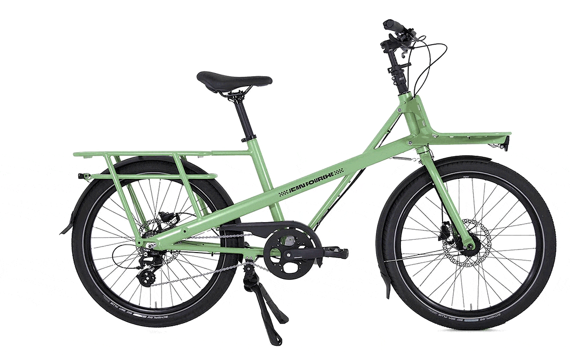Le vélo Jean II est un modèle de vélo cargo qui peut accueillir 70 kg à l’arrière grâce à son porte bagage allongé qui en fait sa particularité. Le rack avant a une capacité de 15 kg.
