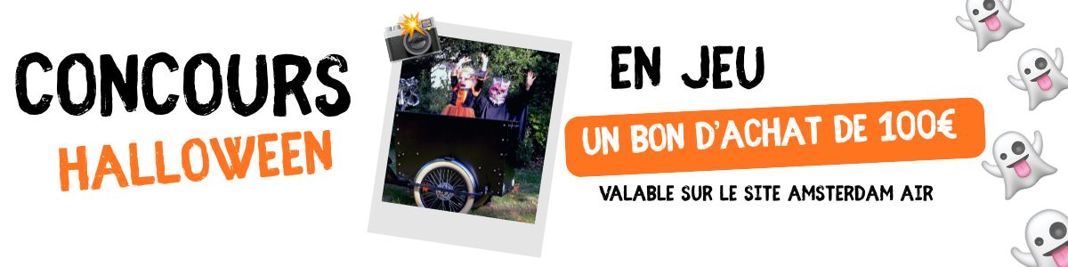 Faites briller la créativité de vos petits monstres ! Prenez une photo de vos enfants dans leurs plus beaux déguisements d’Halloween… installés dans la malle de votre vélo cargo (ou sur votre vélo Amsterdam Air).